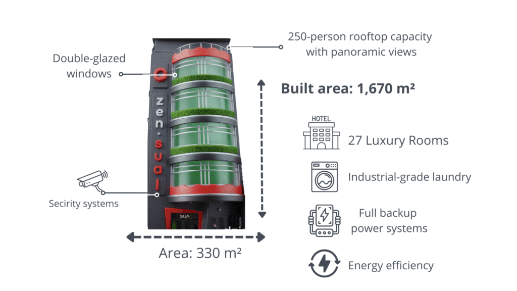 Several immediate growth opportunities exist: Rooftop Development: – 280m² of unused space approved for development – Potential for 5 additional luxury rooms – Estimated 20% revenue increase potential